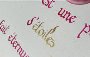 Mes calligraphies ne sont pas de simples textes, elles sont le fruit d'une canalisation profonde. Lorsque je trace une prière, un poème ou les paroles d'une chanson, je me connecte à la fréquence de ce qui est écrit.